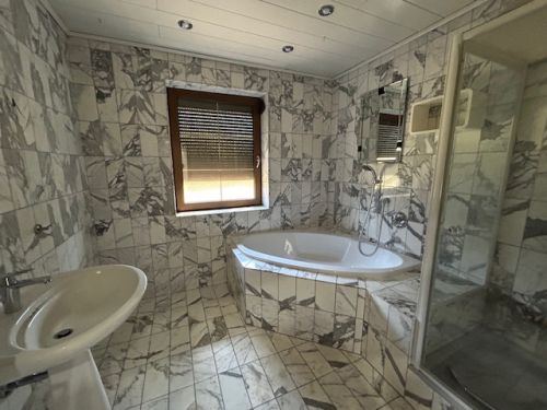 Raumaufteilung: | EG: Vorraum, Küche, Wohnzimmer, 2 Zimmer, Bad, WC, Wintergarten (ca. 31 m², Baujahr 2017), große Holzterrasse DG: Vorraum, 4 Zimmer, Teeküche, Wohnraum über der Garage, Bad plus WC, Balkon Keller: Vorraum, Küche, Gästezimmer, Bad plus WC, Haushaltsraum, Abstellräume, Heizraum, Tankraum - die Kellerräumlichkeiten wurden teilweise zu Wohnräumen umgebaut |